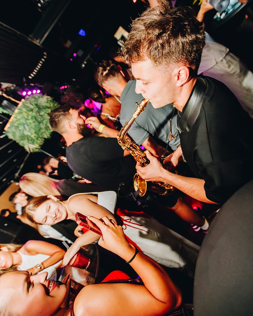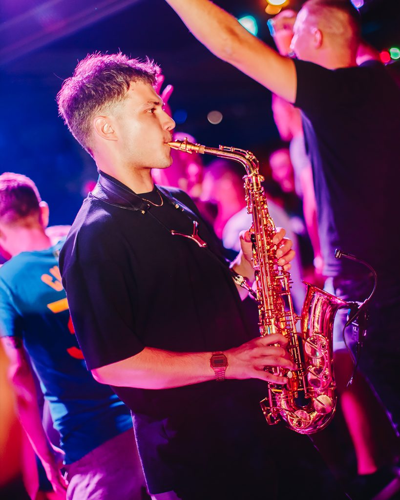 Watch a saxophonist in action lighting up nightclubs with live music!